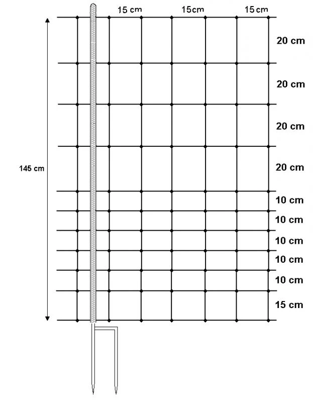 Maschenweite ab 65 cm Höhe: 20 cm x 15 cm