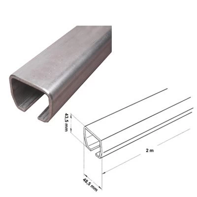 Die Laufschiene aus Stahl ist sendzimirverzinkt und somit auch gut in Stallungen einsetzbar. Ein hoher Anteil an Zink-Magnesium innerhalb der Verzinkung, sorgt zudem für eine höhere Rostbeständigkeit sowie eine nahezu selbstheilende Wirkung an Kratzern und Schnittkanten. Die Schiene eignet sich, in Kombination mit den entsprechenden Rollapparaten für Torgewichte bis 750 kg. Die Montage erfolgt mittels Befestigungsmuffen im Abstand von 750 mm.