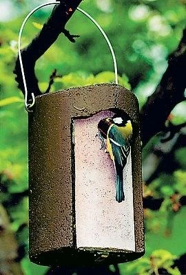Die Nisthöhle kann auch mit dem Aufhängebügel über einen Ast gehängt werden.