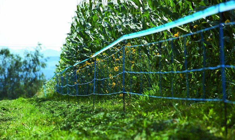 Das Wildabwehr-Netz unterscheidet sich durch schnellen Auf- und Abbau von herkömmlichen E-Zäunen. Robuste Fiberglaspfähle und relativ starre Vertikalstreben bieten eine gute mechanische Barriere gegenüber dem Wild. Als Leiter dienen TriCOND-Drähte mit einer hohen Leitfähigkeit und geringem Leitwiderstand. Die blaue Farbe des Netzes dient der besseren Sichtbarkeit, welche durch zusätzliches Flatterband noch erhöht werden kann.